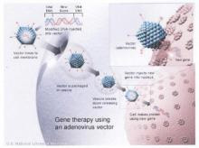 アデノウィルスをつかった遺伝子治療です。NIHホームページより引用しました。ウィルスが簡単に細胞膜と癒合し、細胞内に侵入し、細胞核へと運ばれていく模式図です。