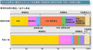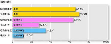 しかし、平成9年には集学的治療は20%以下にまで減少しています(国立がんセンターの統計資料を参照)。